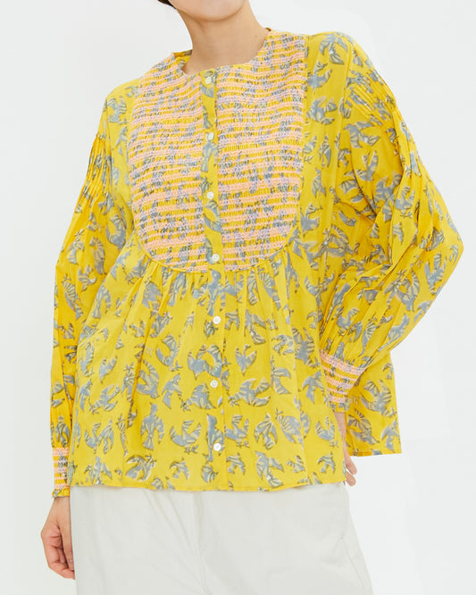 A VIEW FROM HERE BLOCK PRINT SMOCKING BLOUSES SJ-24110413