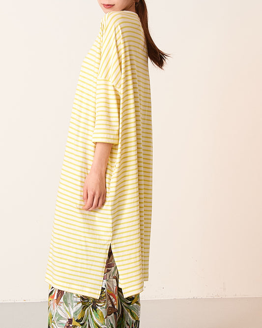 LILOU+LILY 30/1BORDER 6TH SLEEVE TEE ONE-PIECE DRESS 2501TS-0520