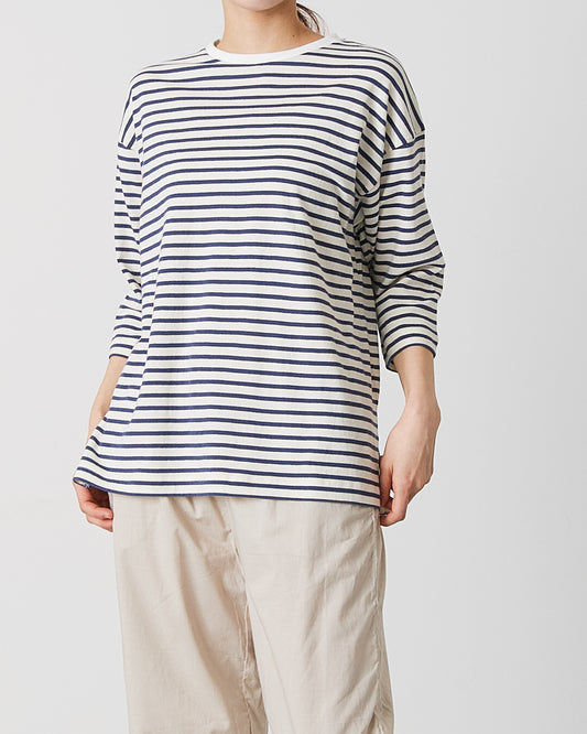 LILOU+LILY 30/1BORDER 6TH SLEEVE TEE 2501TS-0519