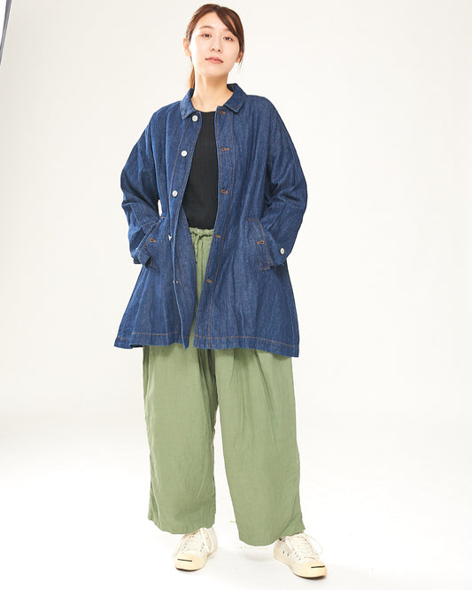 LILOU+LILY DENIM cotton/linen 12OZ MIDI COAT 2403YO-0807