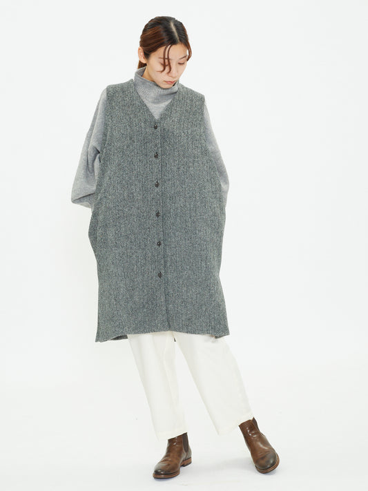 LILOU+LILY HARRIS TWEED LONG VEST 2407YJ-1005