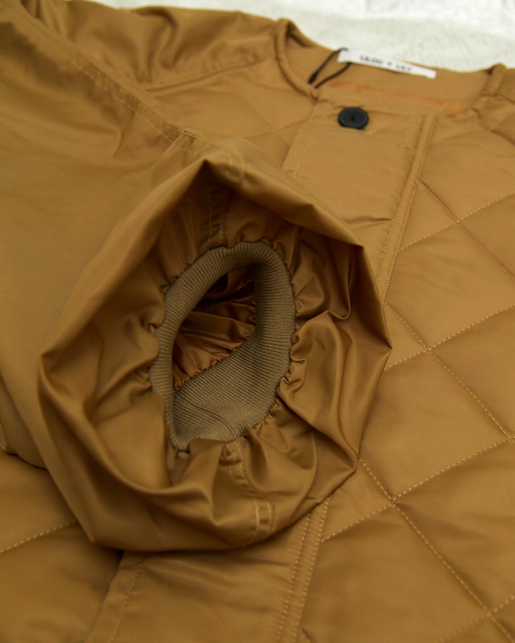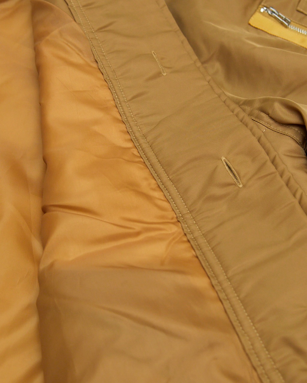 やや光沢のあるナイロンに中綿を入れたアウター